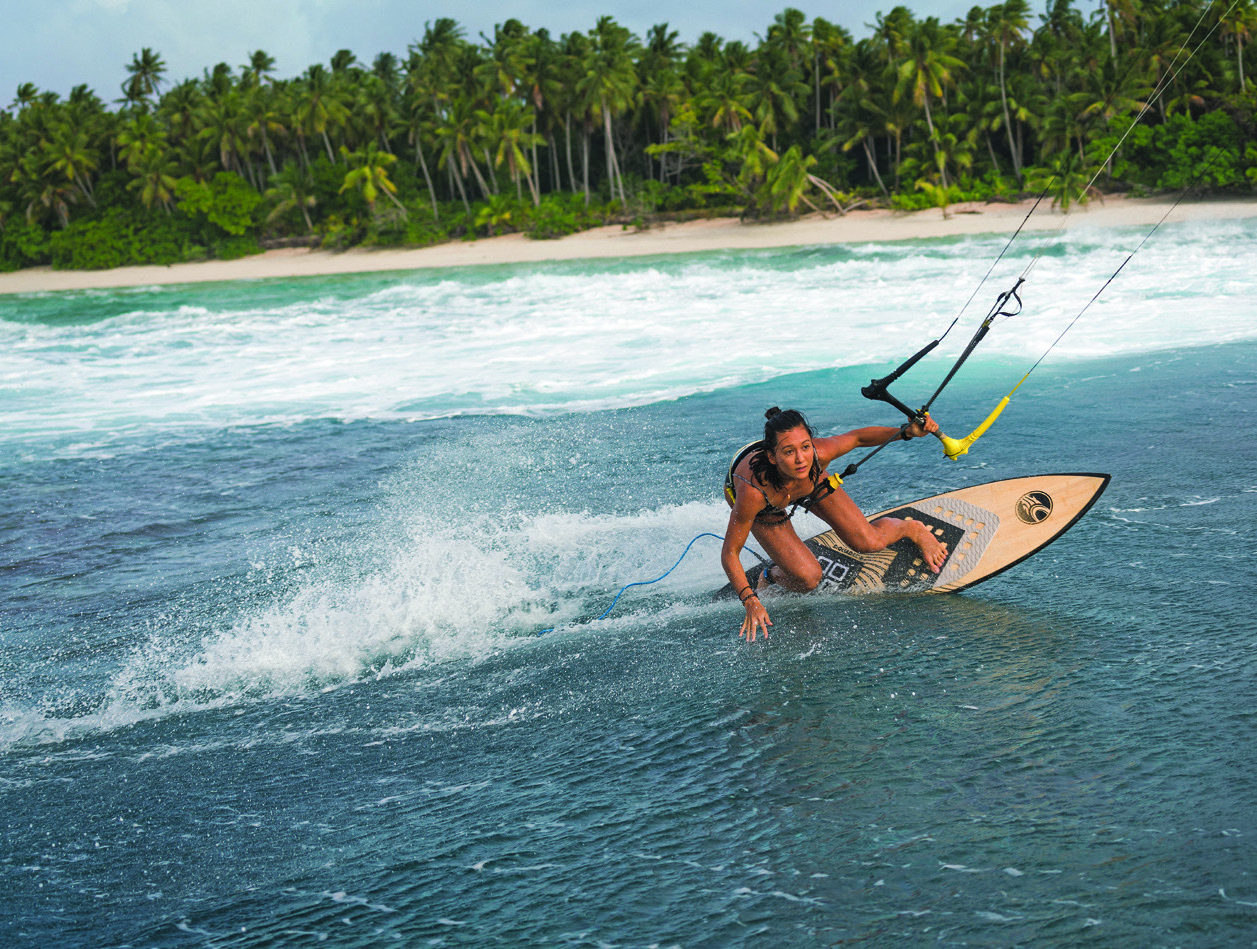 Half the group downwinded and the rest followed on the boat down the coast, past one motu, then the next, until we got to the first pass. Overhead waves wrapped tightly around the reef shelf and bowled on the inside, proving its name. We helped the guests get on and off the boat with their kites. Last was Adriana, and then everyone started to come in for their lunch break. Time for a girls’ session! Starting at the top of the reef with side-onshore wind for our first turn, we’d hit the bowl section with perfect side-shore wind, and finish it off with a last side-offshore turn, with the wave almost facing the opposite direction of where it started. It was good to have some size to the waves, but there were rumors of the swell picking up even more tomorrow, and I was excited to find some barrels. No one asked Martin for a plan, of course. Island time, remember?