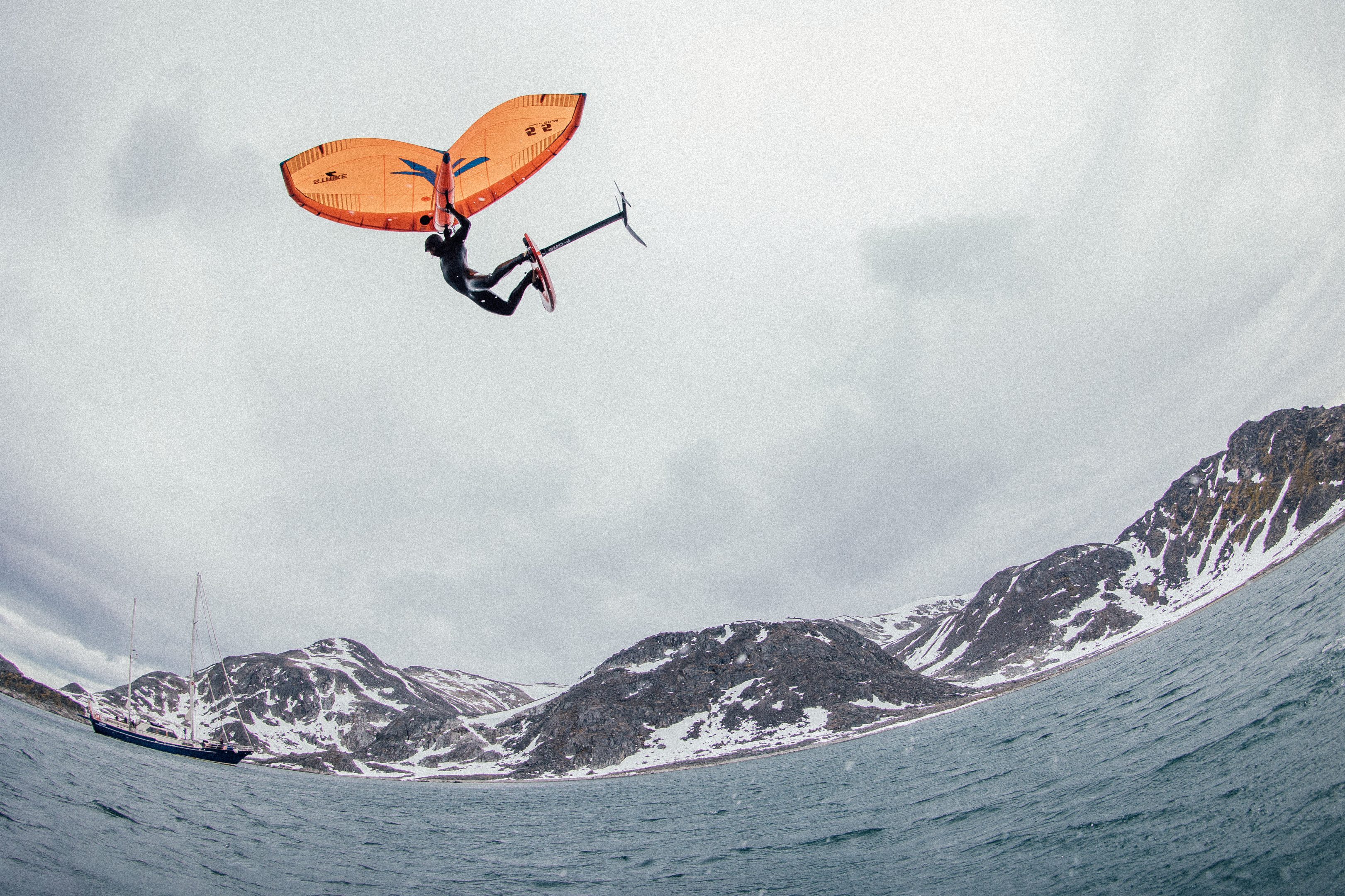 It’s my turn to go in the water, but the wind is a bit too light to really jump high. With Mallo, we spot a drifting iceberg on the other side of the channel. Just like our little adventure on the beach during the first session, we look at each other and immediately rush to see it. The drones get ready and follow us, but it is farther than we thought. If something goes wrong, it would be really complicated to come and get us. Everything will be fine; I tell myself several times.